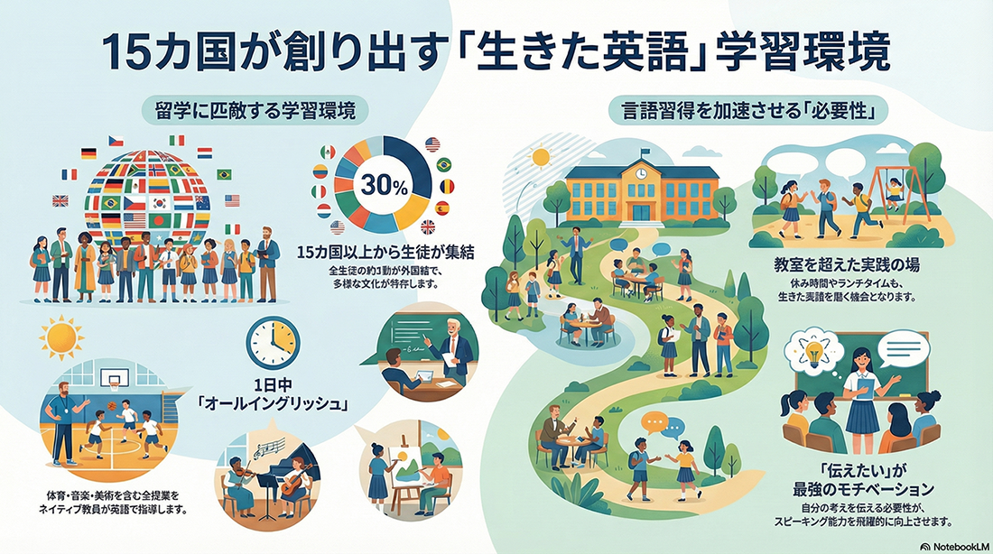 多国籍な環境、探究型のカリキュラム、そして徹底した表現型英語教育——これらすべてが、